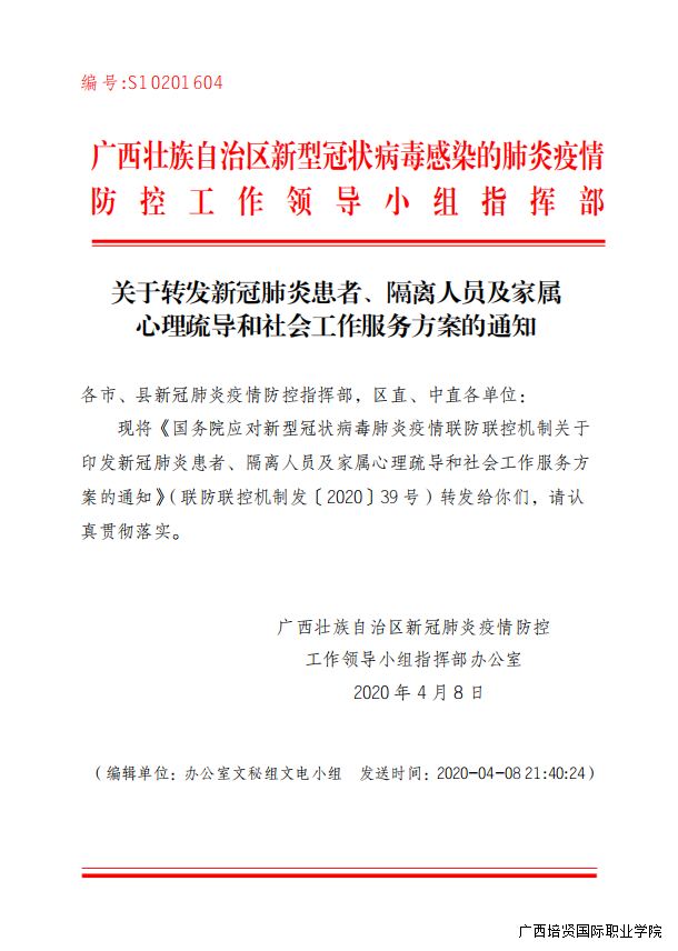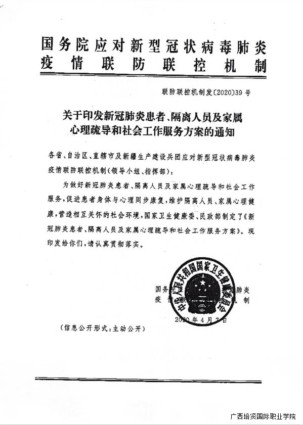 关于转发新冠肺炎患者🆓⛲️、隔离人员及家属心理疏导和社会工作服务方案的通知