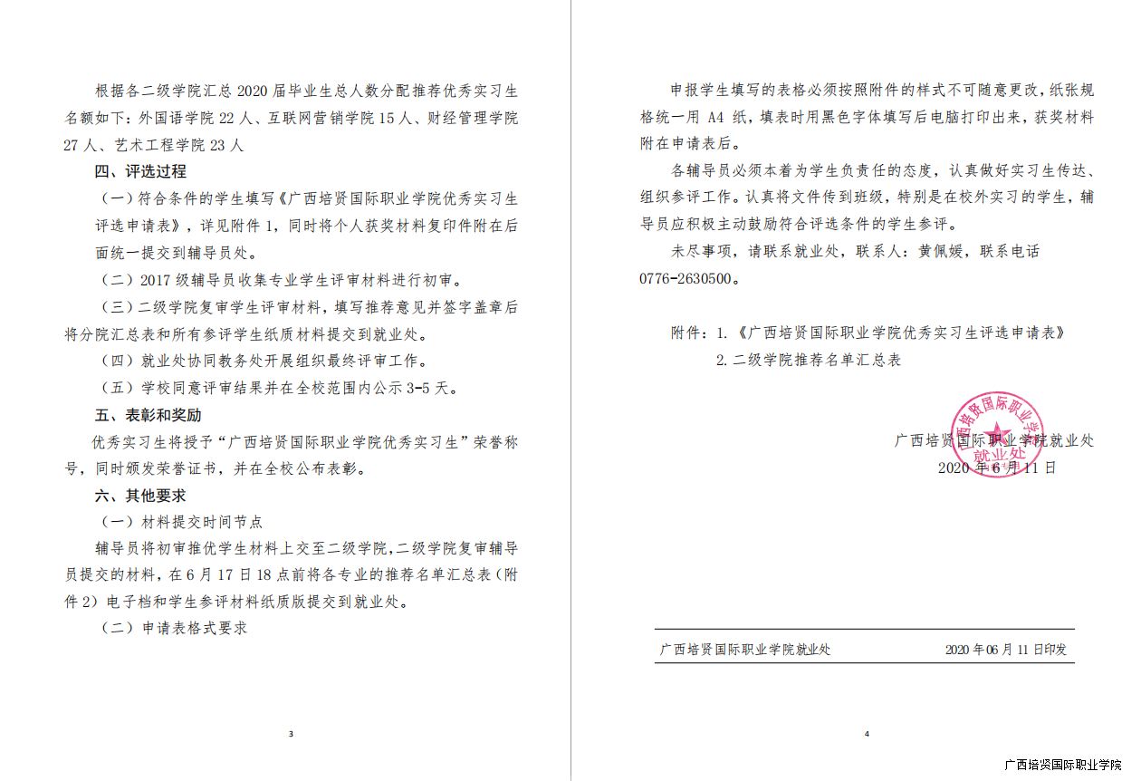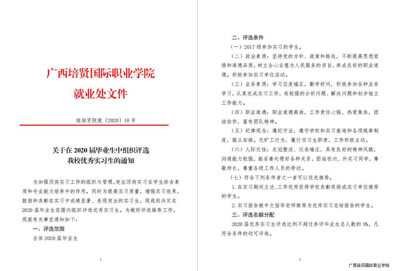 关于在2020届毕业生中组织评选我校优秀实习生的通知