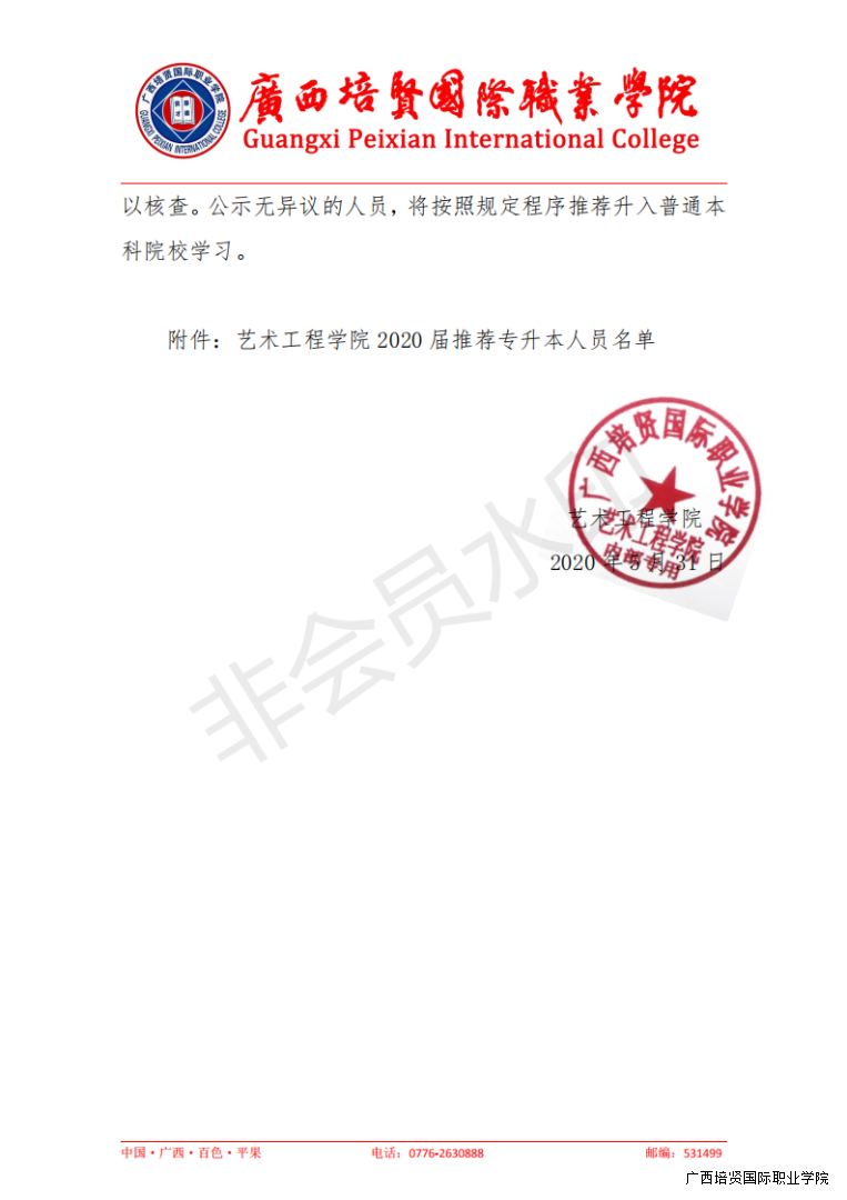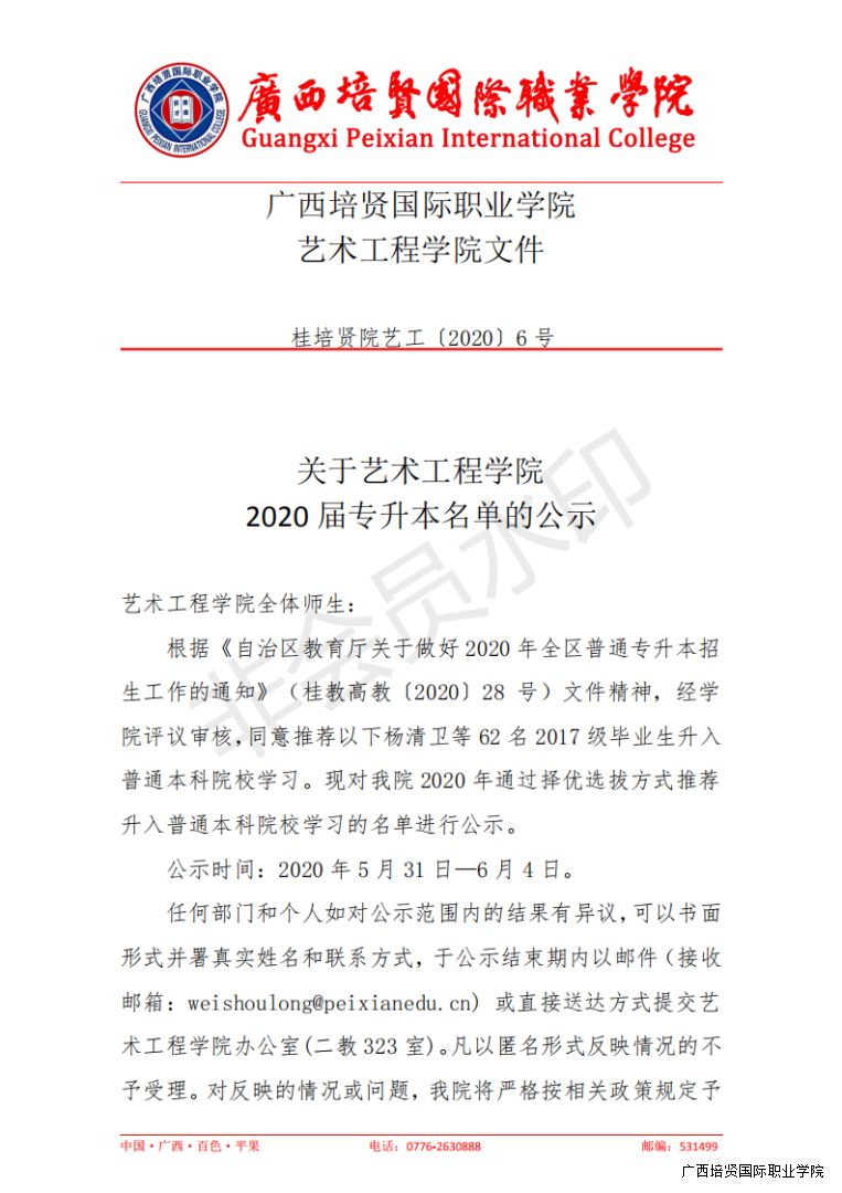关于艺术工程学院 2020 届专升本名单的公示.pdf