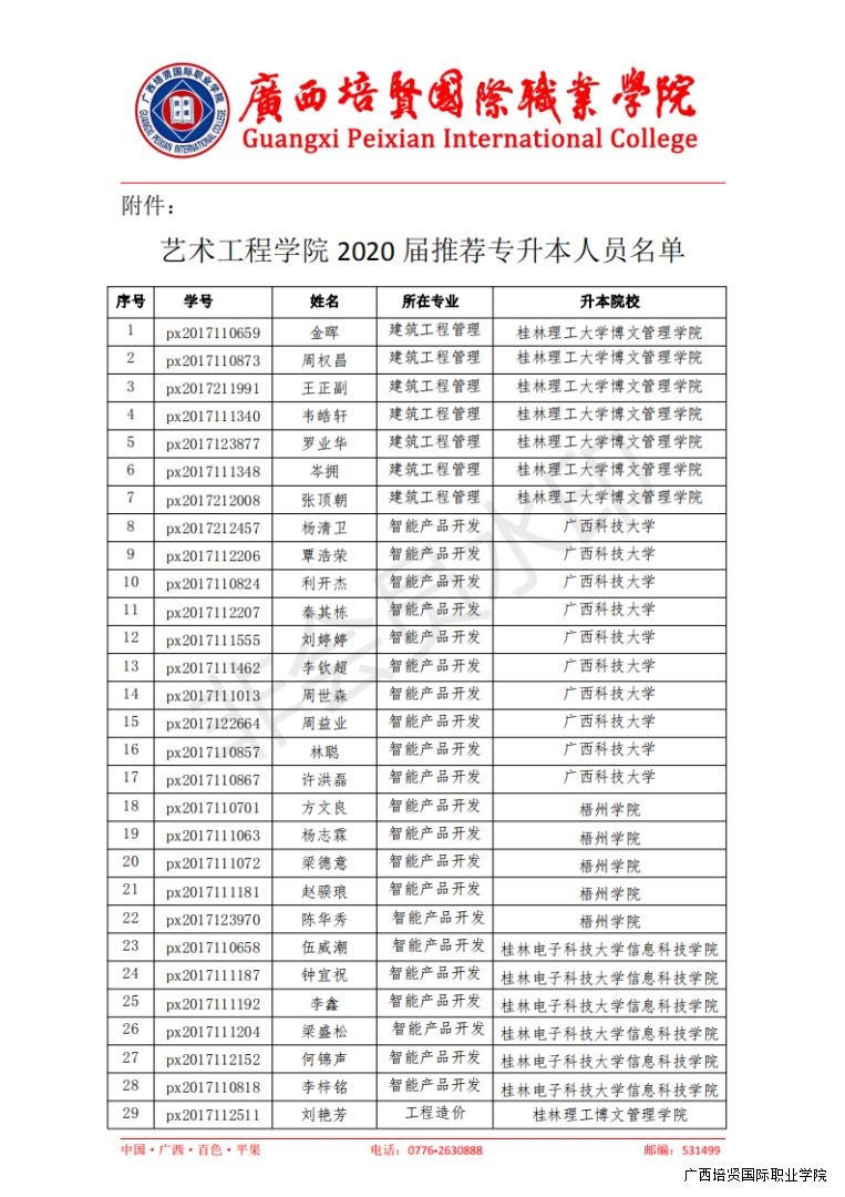关于艺术工程学院 2020 届专升本名单的公示
