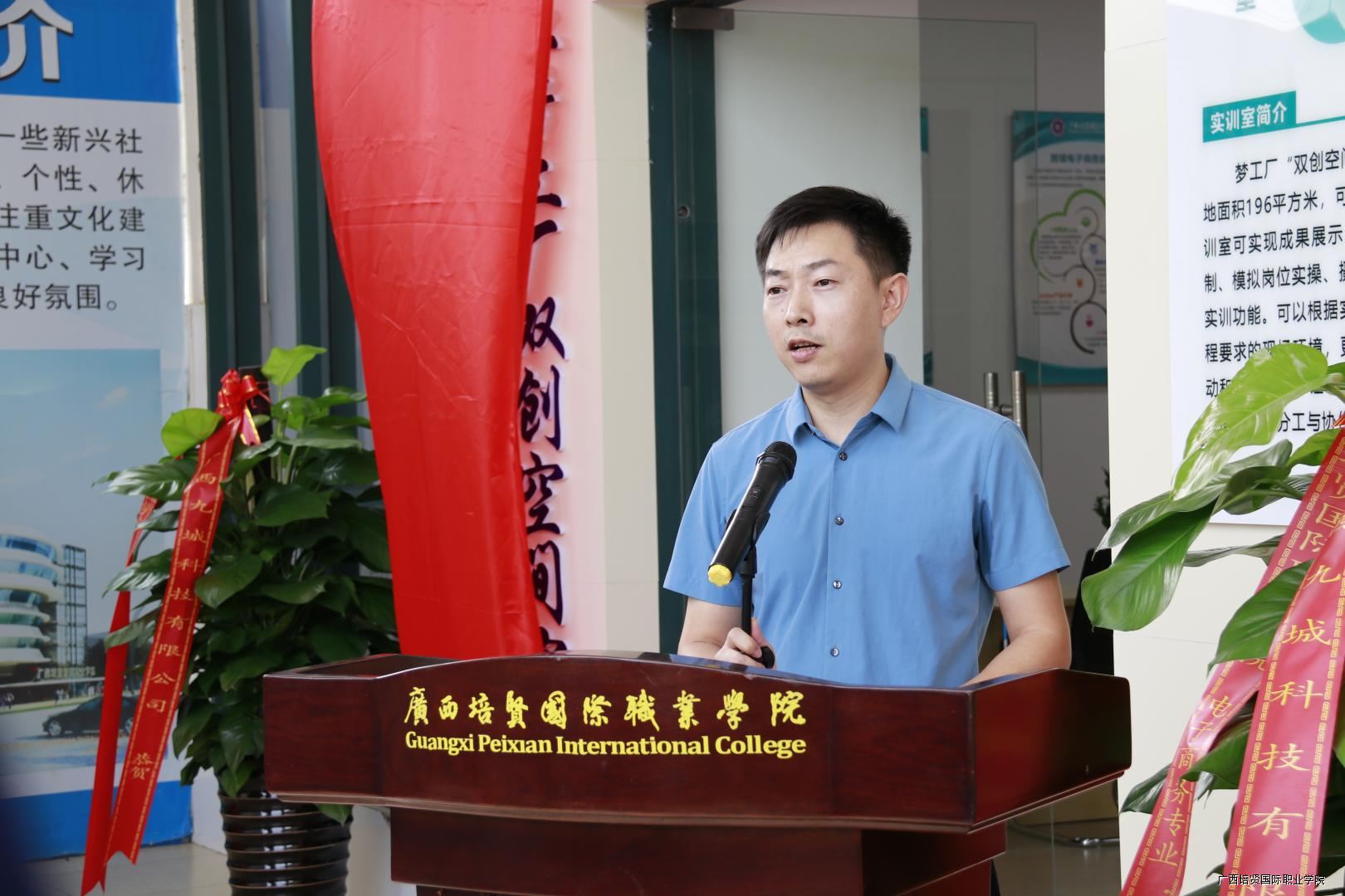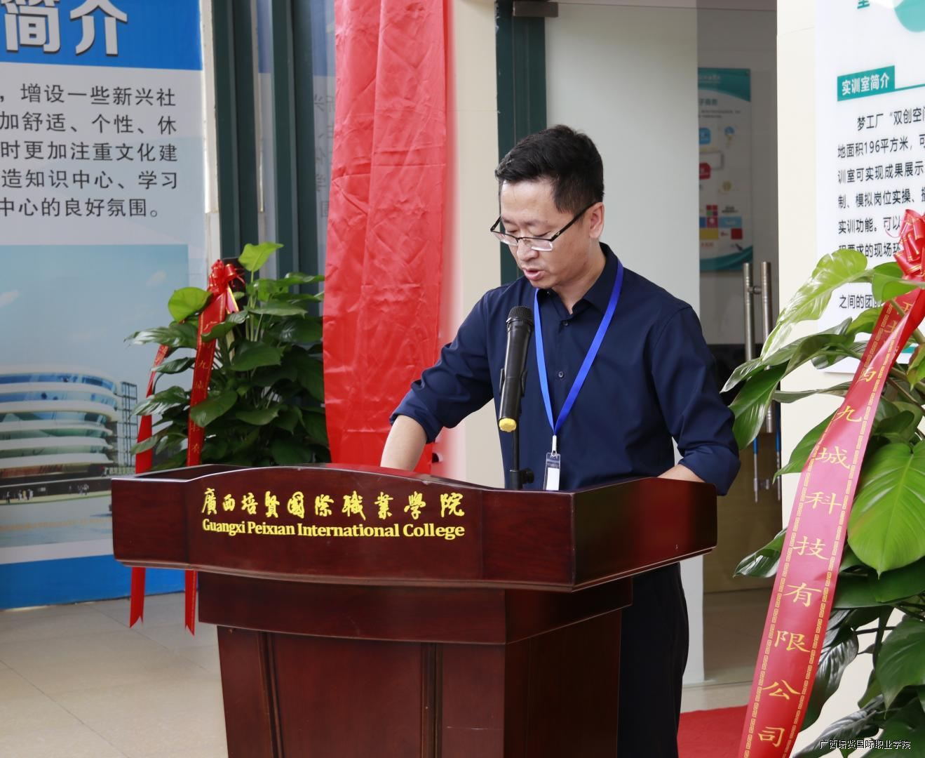 随后,实训室建设方广西九城科技有限公司总经理宋振楚发表讲话,他对实训室的建成投入使用表示热烈祝贺,希望我校能充分发挥实训室的作用🆓,培养出更多理论知识扎实,专业技能过硬,符合社会需求的应用型人才🎥。