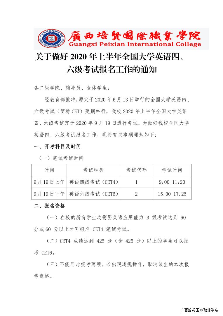 转发行政培训部《关于做好 2020 年上半年全国大学英语四🍄🟫、六级考试报名工作的通知》
