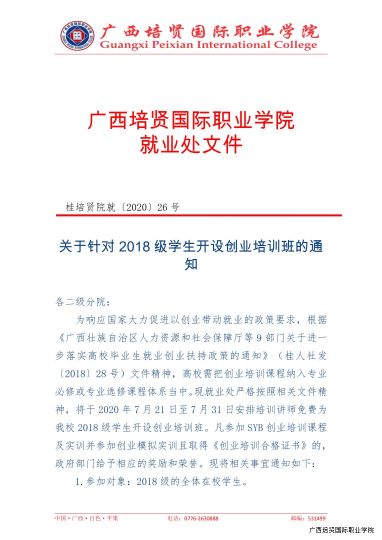 1. 转发就业处《关于针对 2018 级学生开设创业培训班的通》