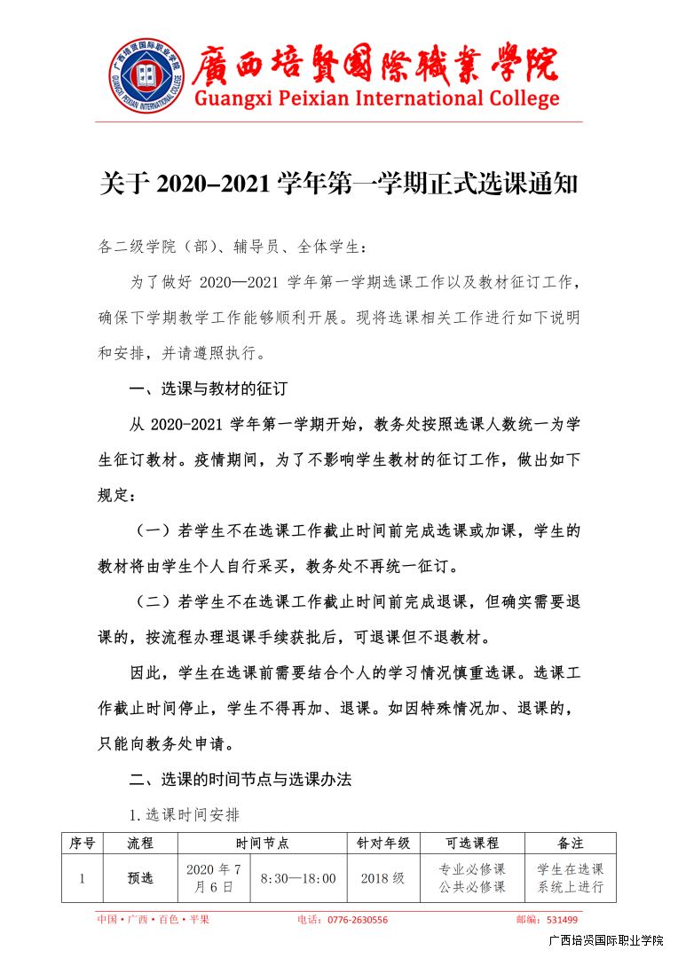 1. 转发教务处《关于 2020-2021 学年第一学期正式选课通知》