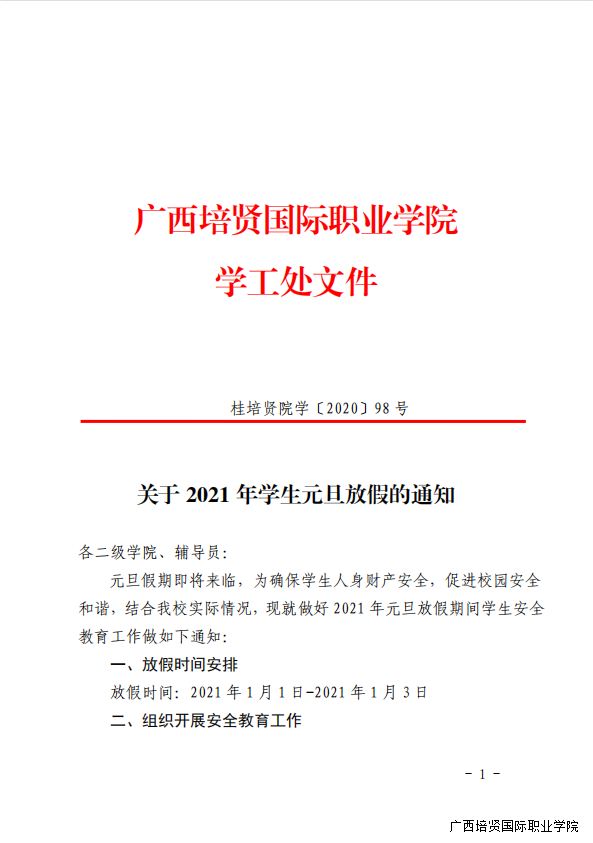 关于2021年学生元旦放假的通知