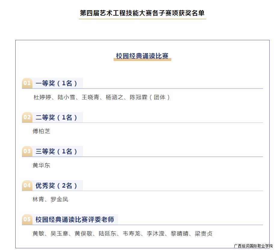 出席本次大赛闭幕式的领导及嘉宾有:学校副校长李锡武,董事长助理陈雯雯🍐,艺术工程学院副院长谭岳霖🐦🔥,教务科科长韦寿龙,学工科科长邱贵新,党政办主任陈燕娟🐷📠,校园经典诵读比赛裁判长黄敏,无人机模拟飞行🏊、应急搜寻🎞😟、创新应用技能赛裁判长徐光进,室内设计手绘效果图技能赛裁判长卫萌彬,建筑制图与识图及revit建模技能赛裁判长蒋秋宁,财经管理学院分团委李沐滢老师🕵️,互联网营销学院分团委向子馨老师🈷️,外国语学院分团委黎晴晴老师,艺术工程学院党支部庞莹丽老师、党支部黄丽艳老师🌓、分团委干事潘有灵老师,以及艺术工程学院各专业任课教师、辅导员和各专业同学代表。
