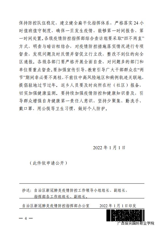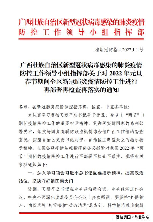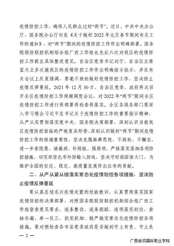 转发疫情防控关于对 2022 年元旦 春节期间全区新冠肺炎疫情防控工作进行 再部署再检查再落实的通知
