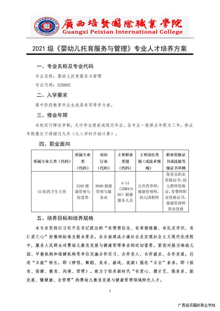 1. 2021级婴幼儿托育服务与管理专业人才培养方案