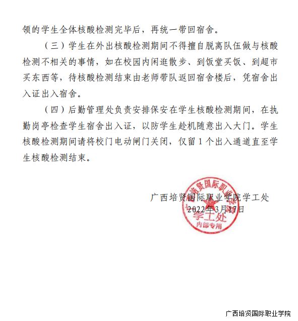 转发学工处关于开展广西彩神国际职业学院核酸检测工作 安排及注意事项的通知