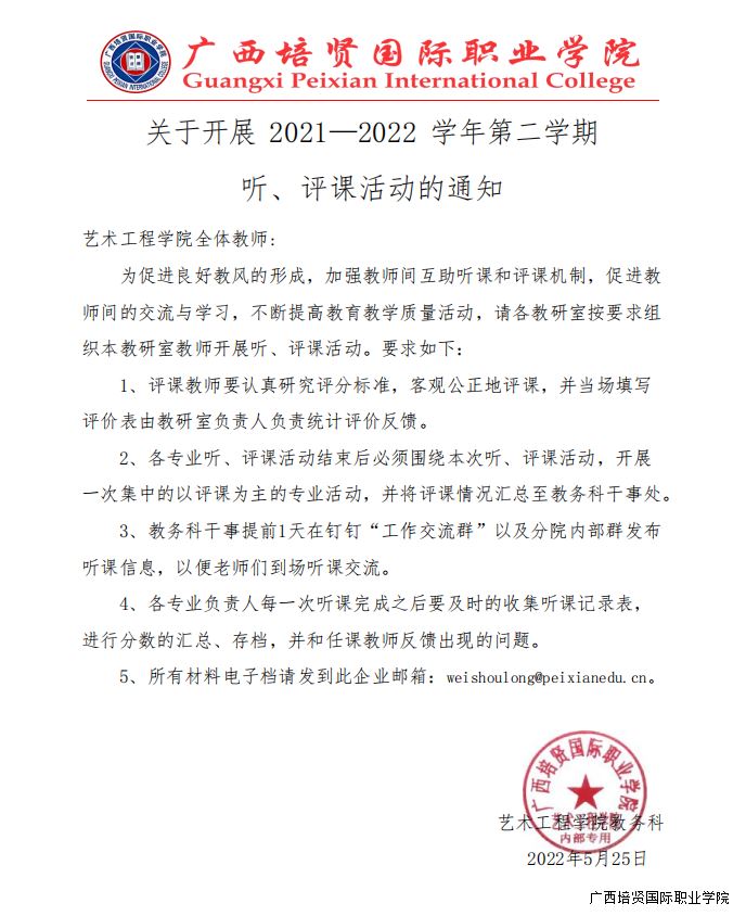 关于开展2021—2022学年第二学期听、评课活动的通知