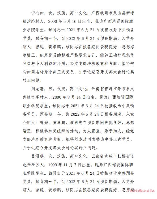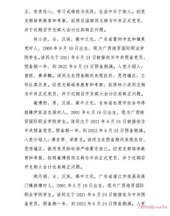 1. 关于拟将张宗如、李金霞等 12 名同志转为 中共正式党员的公示