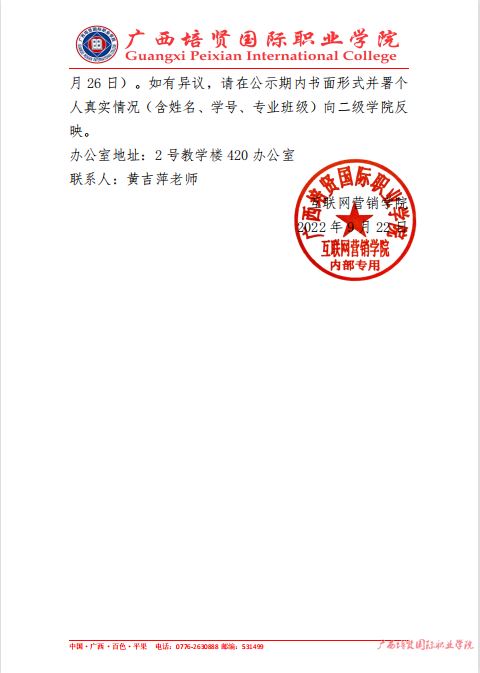 互联网营销学院2021-2022学年度国家奖学金拟推荐名单的公示