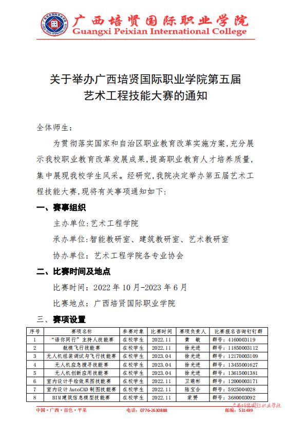 关于举办广西彩神国际职业学院第五届艺术工程技能大赛的通知