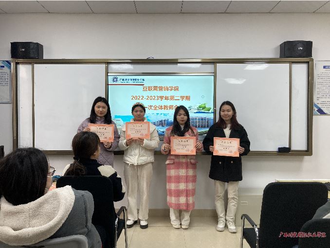 会议最后✊,举行了广西彩神国际职业学院互联网营销学院2022-2023学年第一学期听评课比赛的颁奖典礼👷🏻。