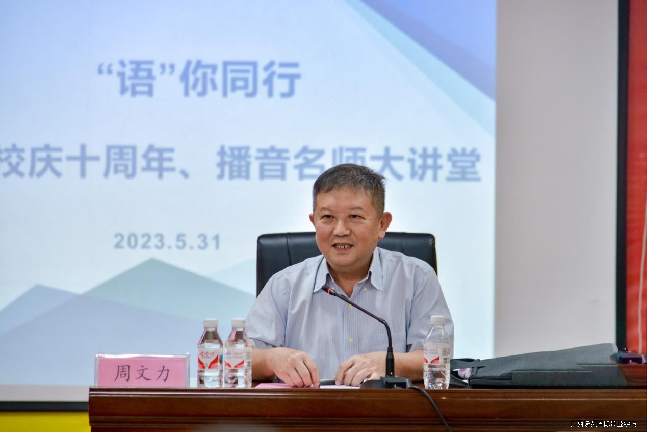 在迎接建校十周年之际,结合播音与主持专业特点,为培养适应新时代经济社会发展需要的应用型技术性人才,2023年5月31日下午🐴,我校邀请广西壮族自治区人民政府参事、广西电视台台长周文力教授莅临我校开展“播音名师讲堂”讲座。