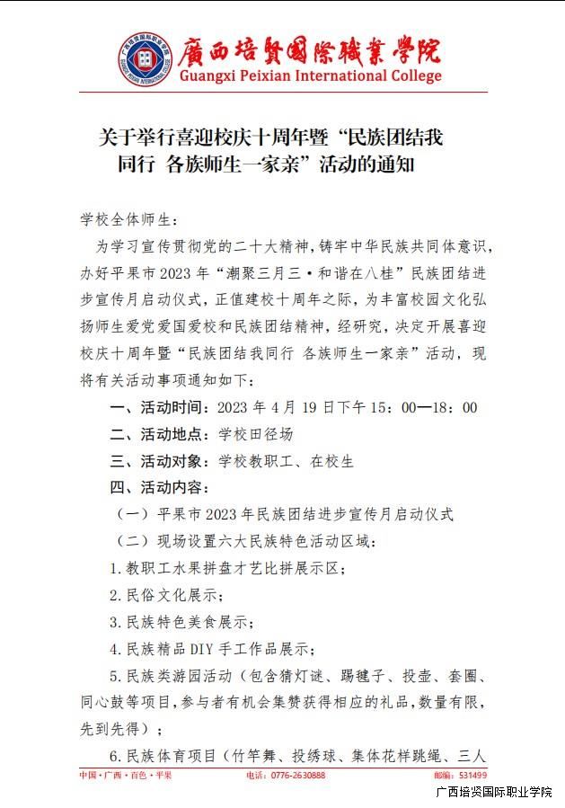 转学院委员会关于举行喜迎校庆十周年暨“民族团结我同行 各族师生一家亲”活动的通知