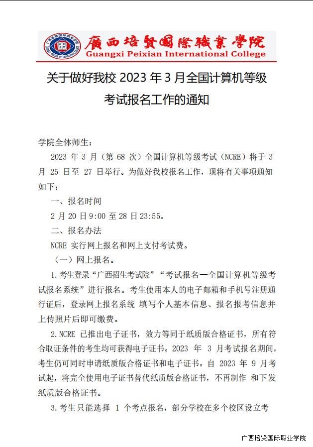 转行政培训部关于做好我校2023年3月全国计算机等级考试报名工作的通知