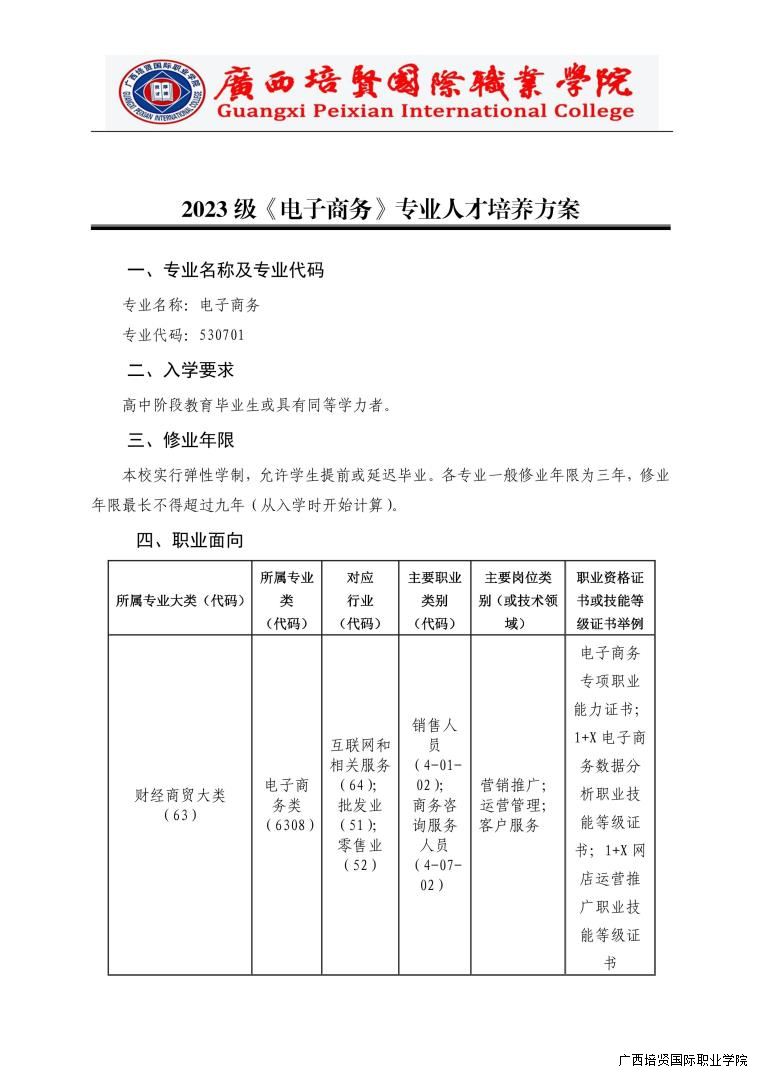 2023级《电子商务(网页美工方向)》专业人才培养方案