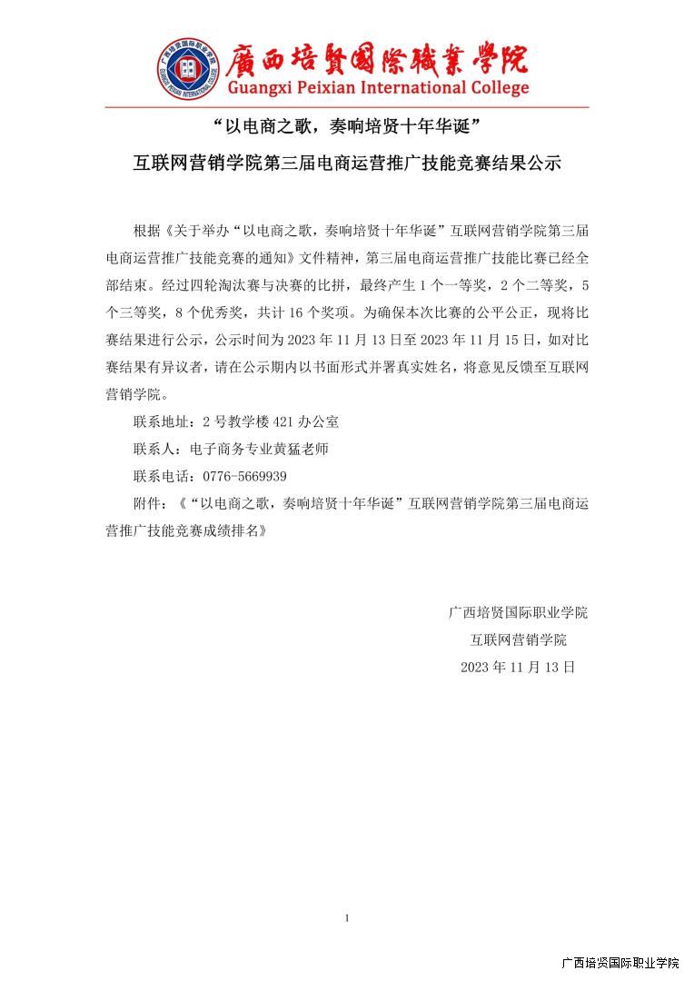 1. “以电商之歌,奏响彩神十年华诞”互联网营销学院第三届电商运营推广技能竞赛结果公示