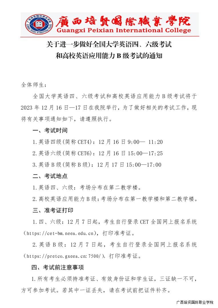 1. 转行政培训部《关于进一步做好全国大学英语四、六级考试和高校英语应用能力B级考试的通知》