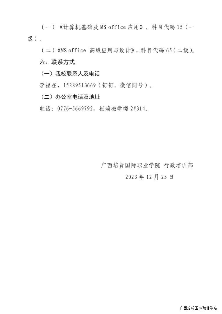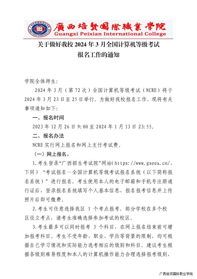 转行政培训部《关于做好我校2024年3月全国计算机等级考试报名工作的通知》