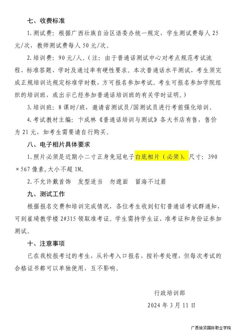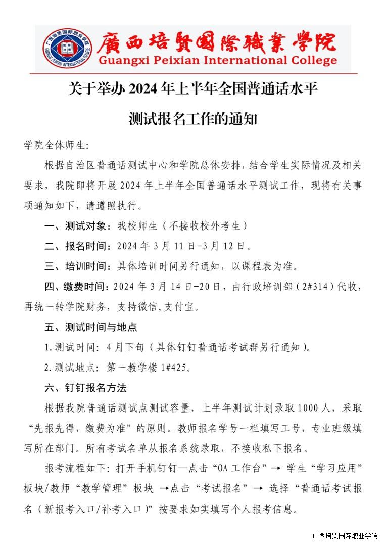 转行政培训部《关于举办2024年上半年全国普通话水平测试报名工作的通知》