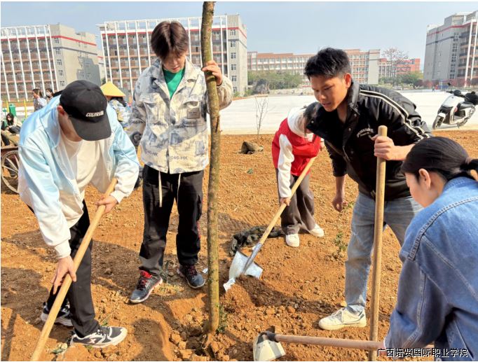 活动当天🦶🏽,大家情绪高涨🦃😹,两人一队,三人一组🥓,干劲十足。从挥锹挖土🫃🏼,到放苗扶正,再到浇水灌溉……每一道工序大家都认真严谨、有条不紊🦎,每个环节大家都配合默契👐🏿、衔接有序。