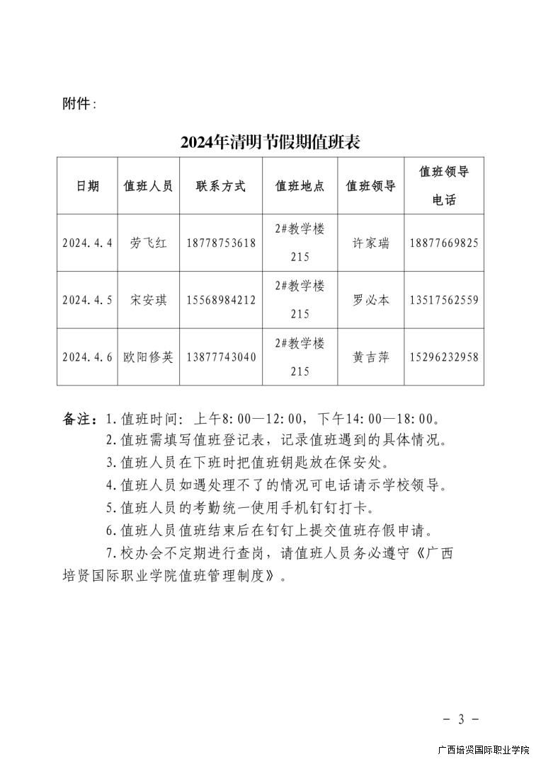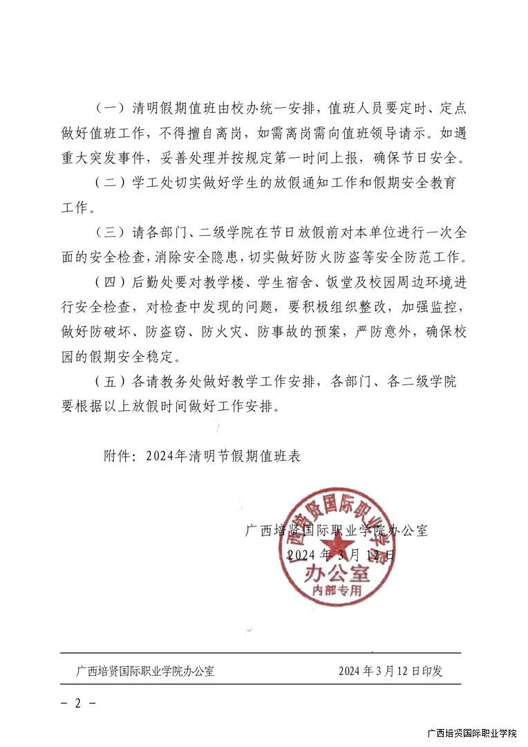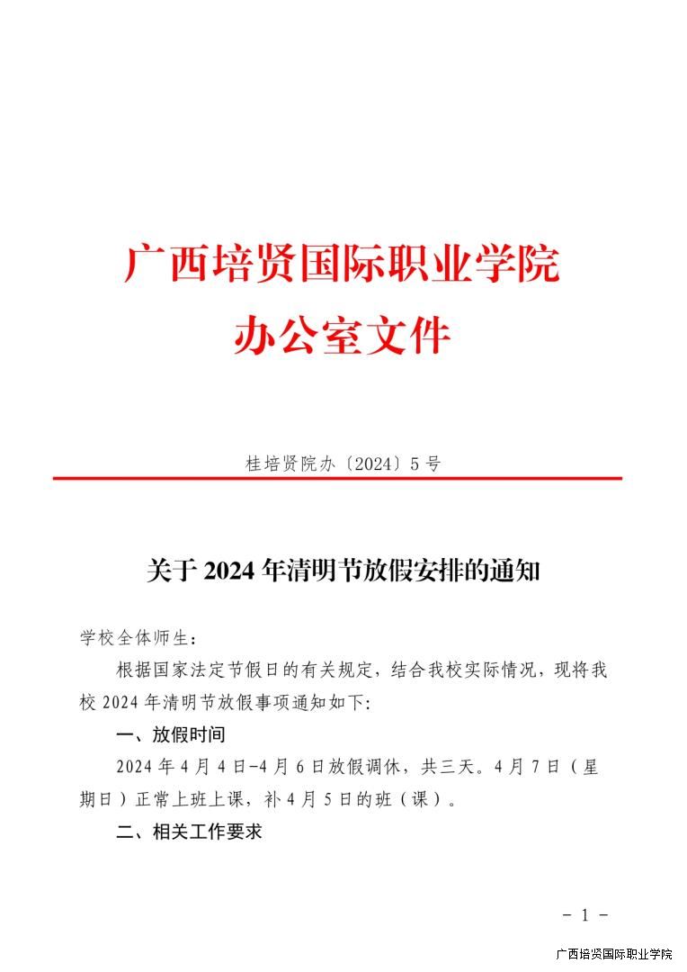 1. 转学院办公室《关于2024年清明节放假安排的通知》