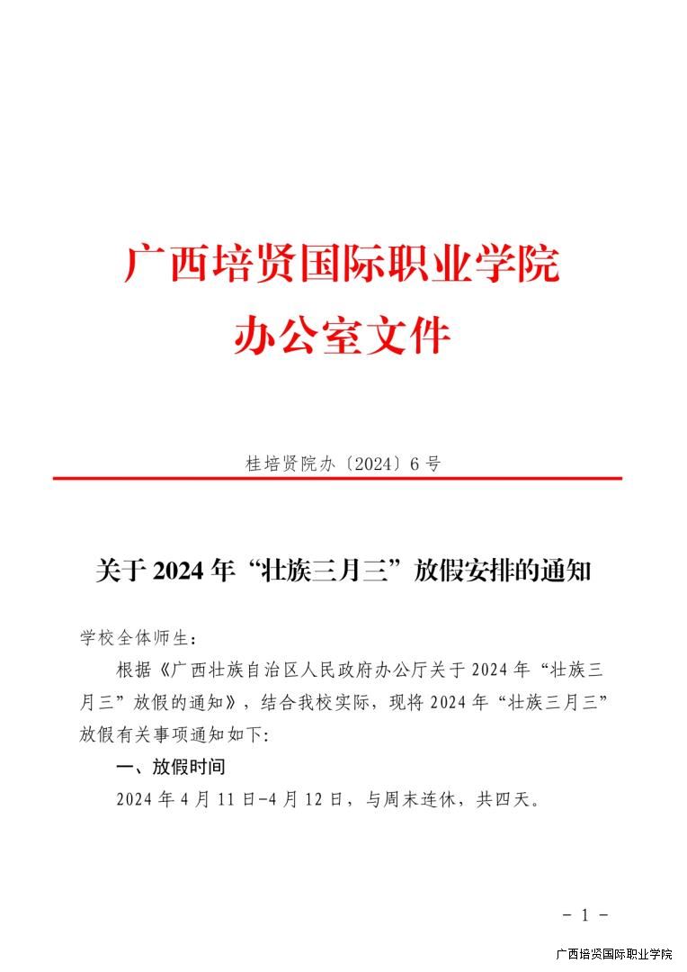 1. 转学院办公室《关于2024年“壮族三月三”放假安排的通知》