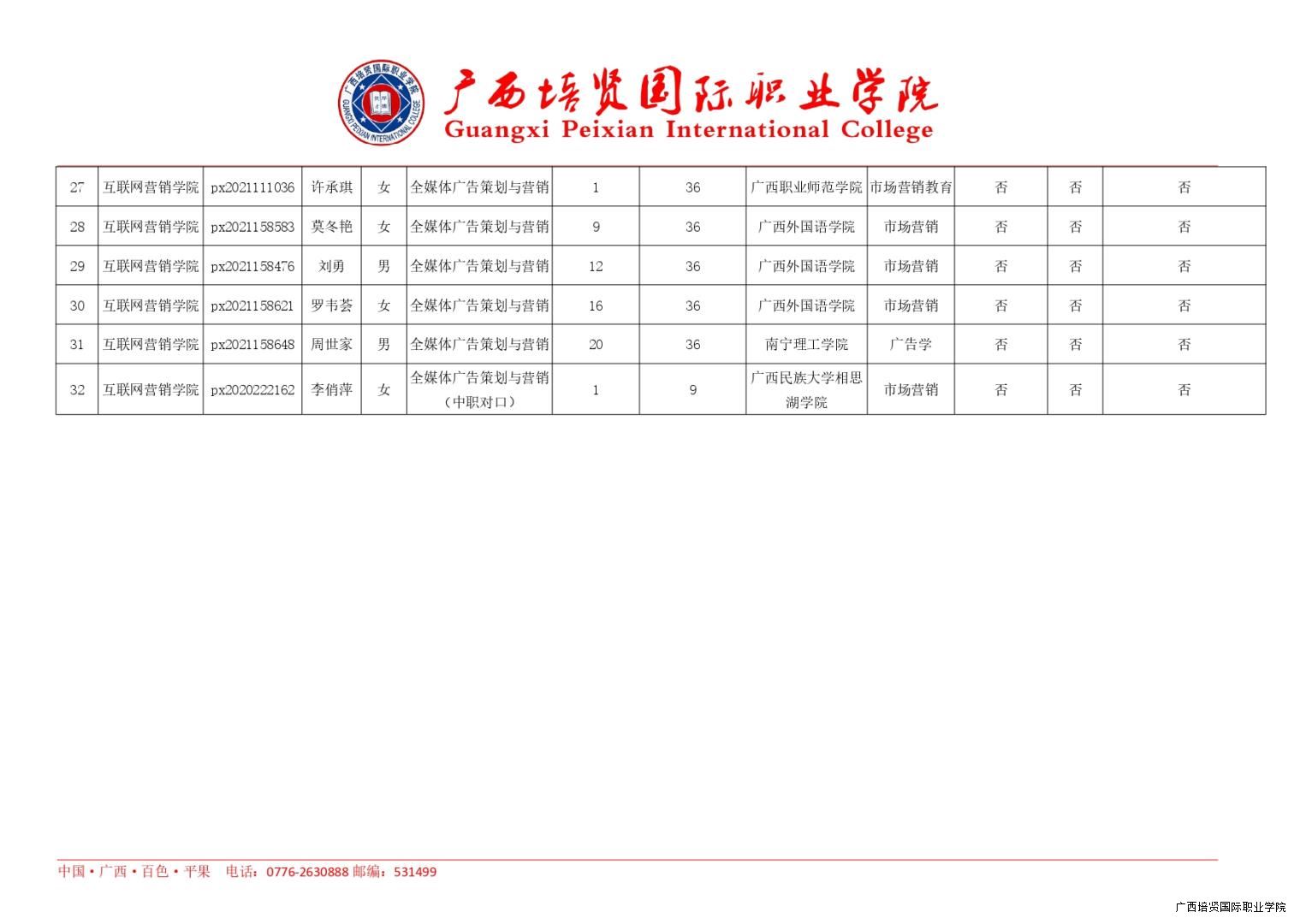 互联网营销学院 2024 届毕业生专升本不占下达计划指标名单公示