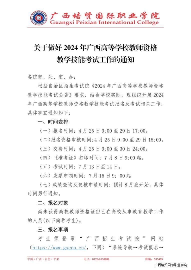 转人事处《关于做好2024年广西高等学校教师资格教学技能考试工作的通知》
