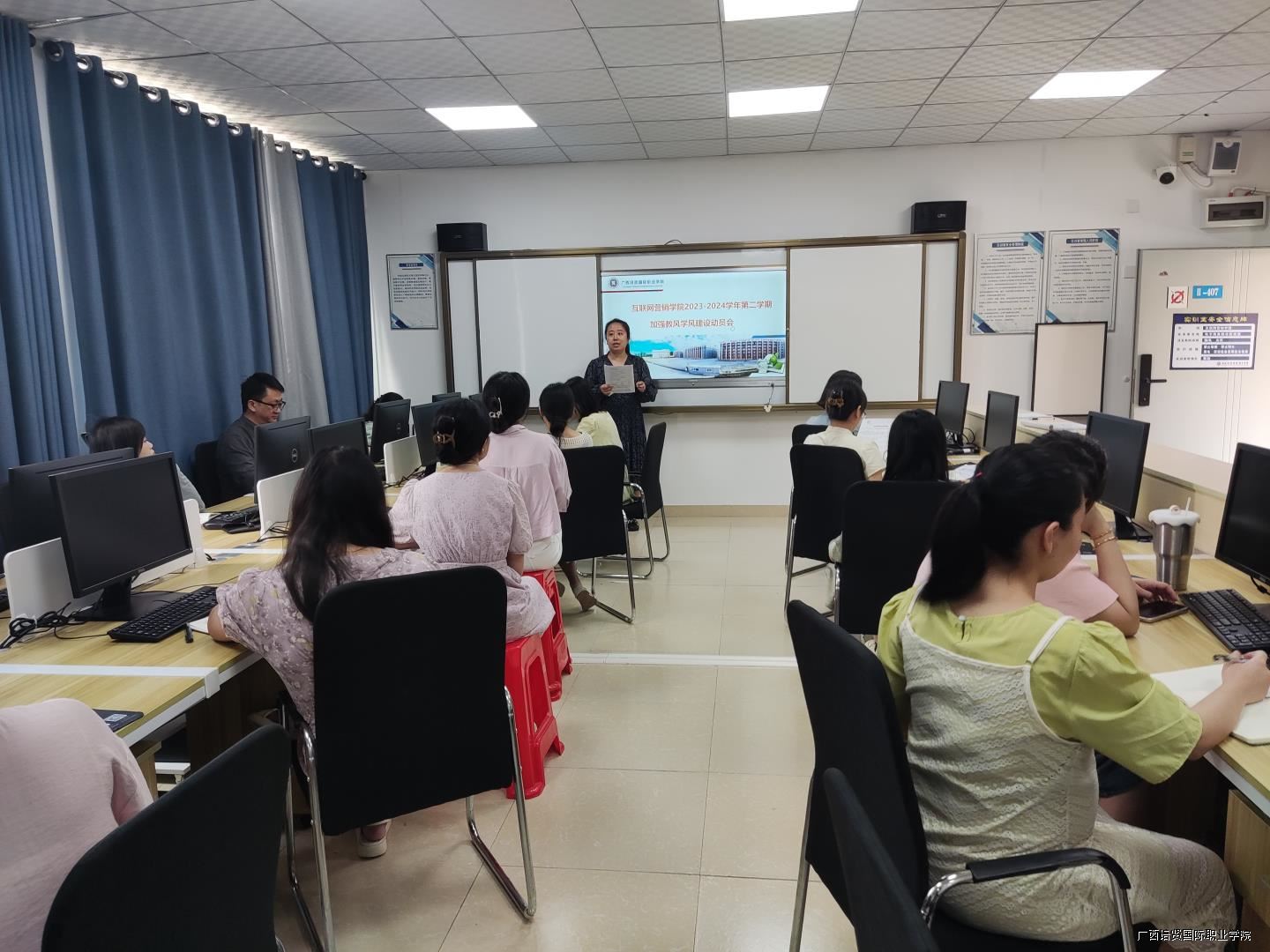 为深入学习贯彻党的二十大精神和习近平总书记关于教育的重要论述,提高教师认识教风学风建设的重要性和必要性🌎,互联网营销学院于2024年5月13日组织分院全体教师召开教风学风建设动员大会。本次会议由互联网营销学院院长助理胡莹主持🙅🏽♂️。