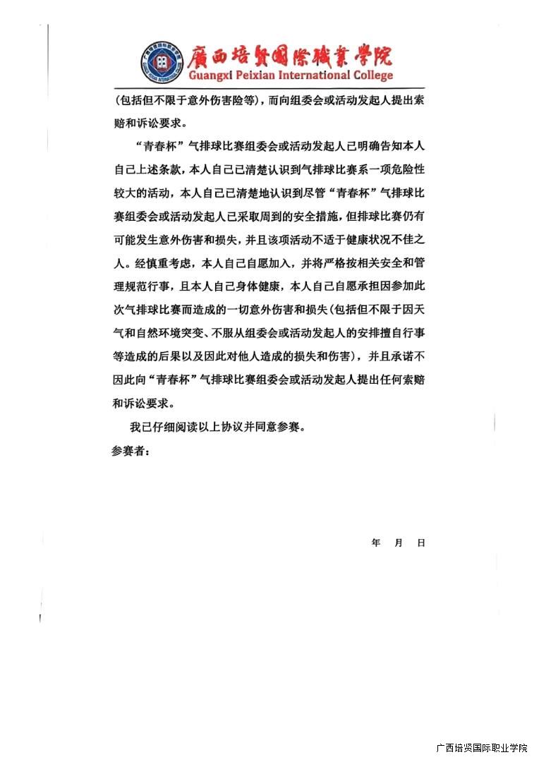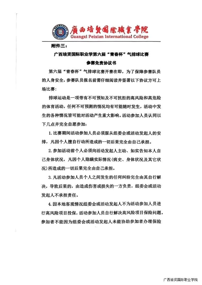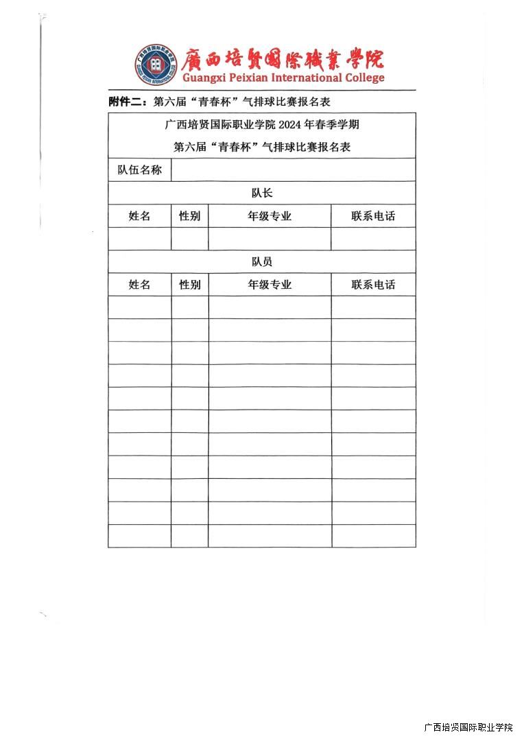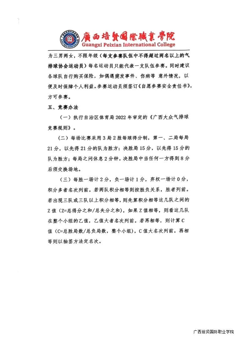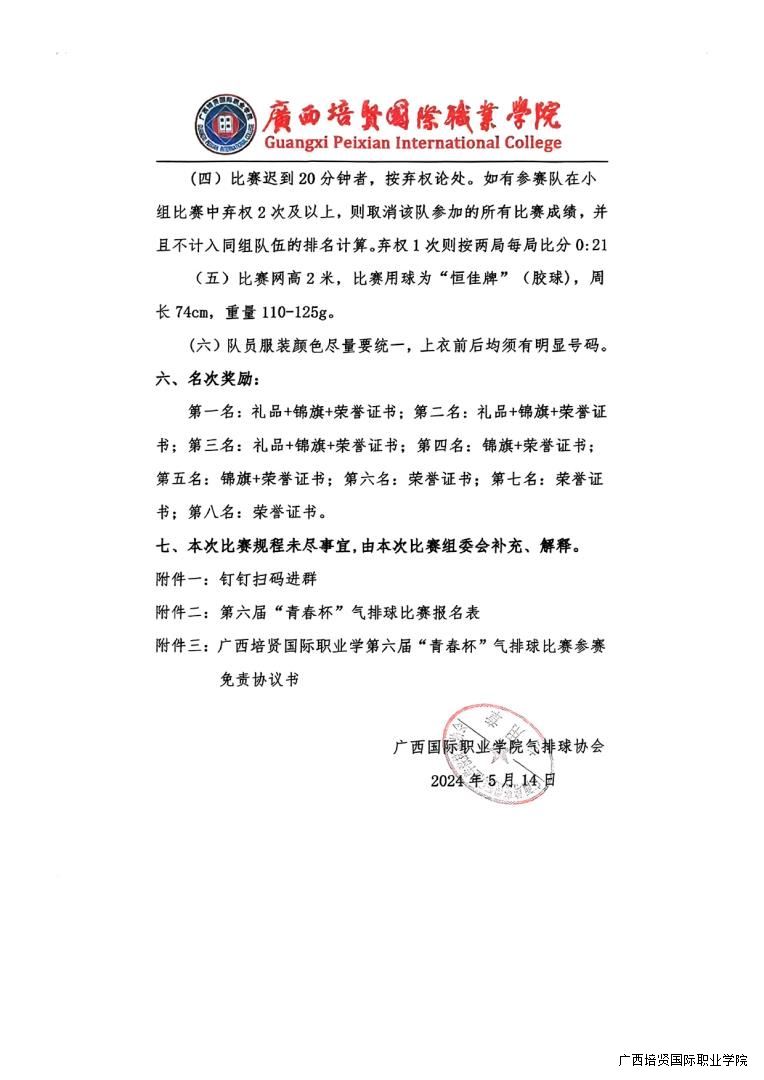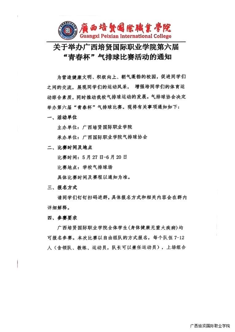 转气排球协会《关于举办广西彩神国际职业学院第六届“青春杯”气排球比赛活动的通知》