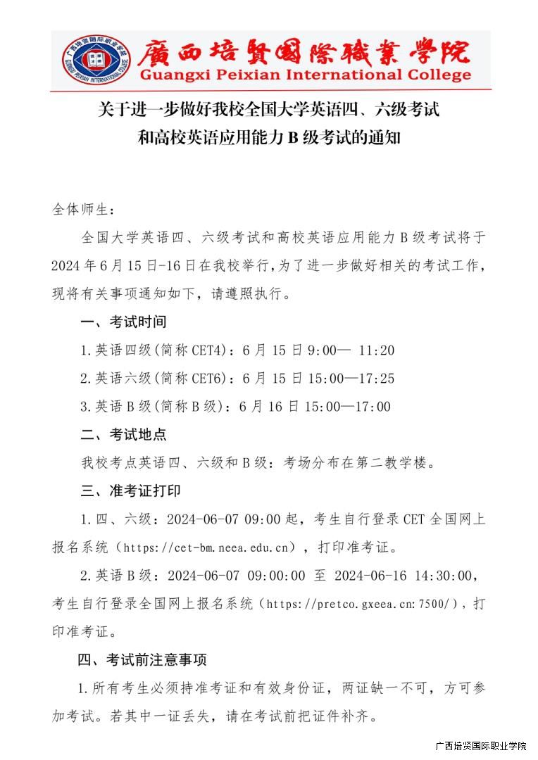 转行政培训部《关于进一步做好我校全国大学英语四、六级考试和高校英语应用能力B级考试的通知》