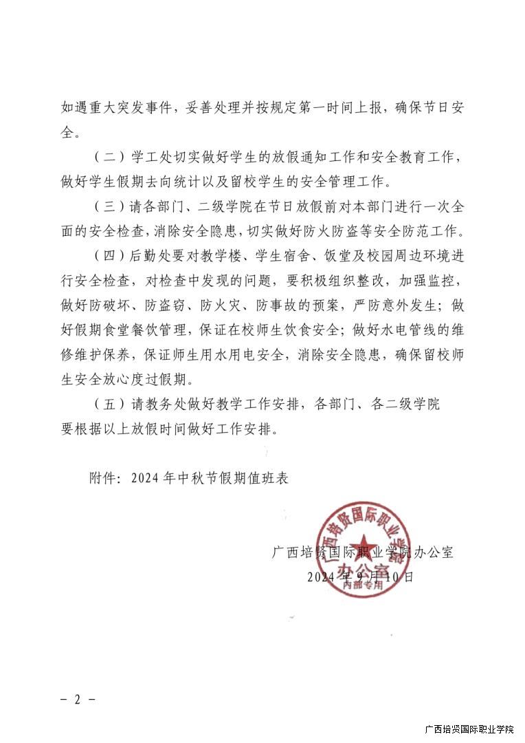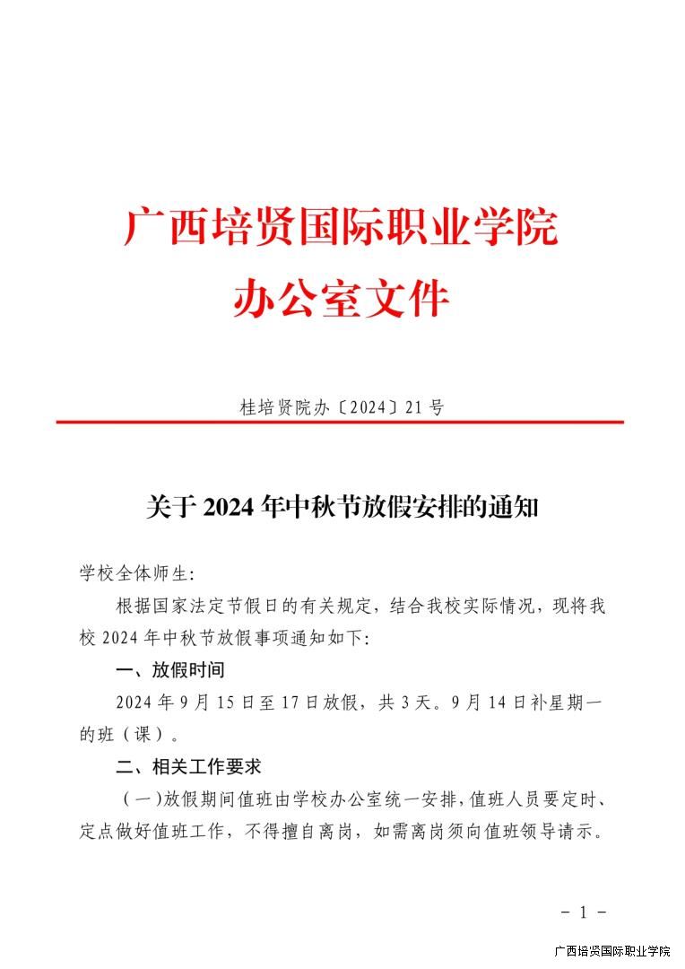 1. 转学院办公室《关于2024年中秋节放假安排的通知》