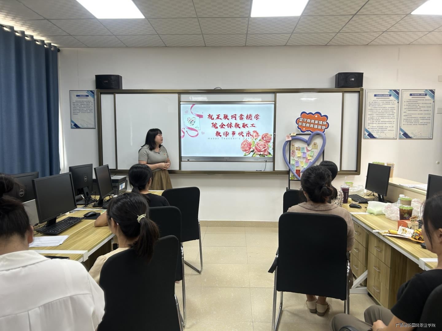2024年9月10日是我国第40个教师节,为做好2024年教师节宣传庆祝工作,集中展示互联网营销学院始终坚持以习近平新时代中国特色社会主义思想为指导🧑‍🍳,大力弘扬教育家精神,全面展示互联网营销学院教师队伍立德树人🆚、自信自强的精神风貌👈🏿,营造尊师重教的良好氛围🧍🧏🏻‍♂️,进一步推动校园文化建设,9月10日上午,互联网营销学院全体教师在2-407教师开展以“立德树人铸师魂🔎,感念师恩深似海”为主题的教师节活动,活动由学院党支部副书记班丽婷主持。