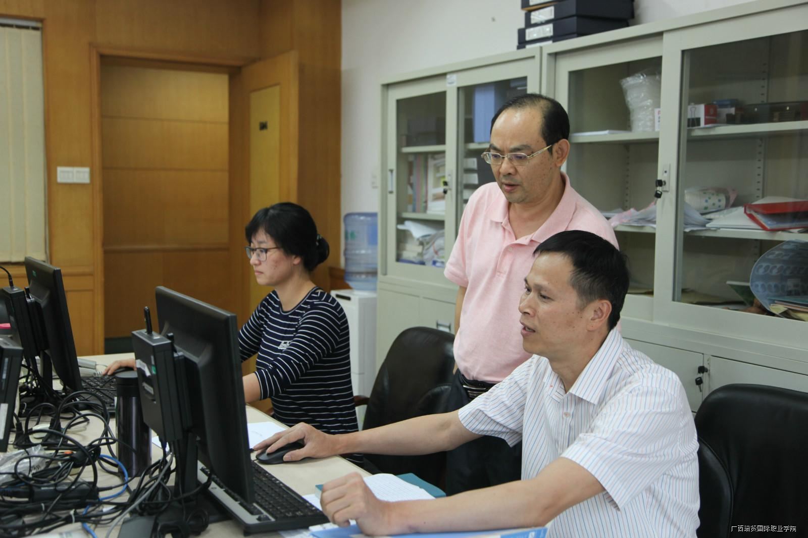 在录取现场,李清先院长详细了解了我区2018年普通高考分类考试招生录取情况和广西普通高考分类考试招生录取管理系统使用情况。