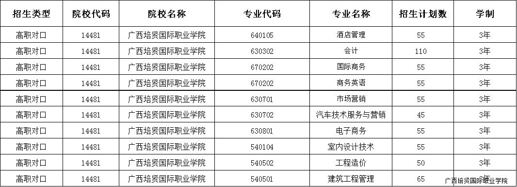广西彩神国际职业学院2017年对口招生计划