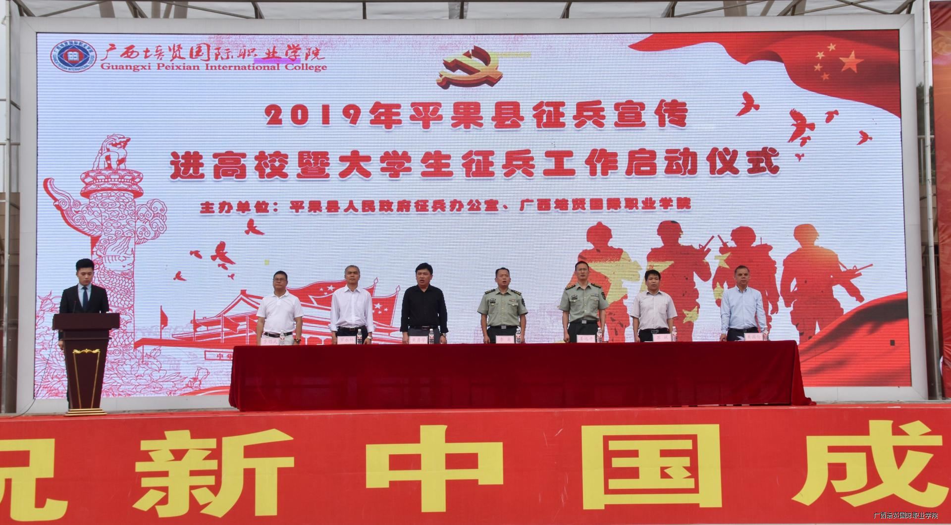 为加强2019年征兵宣传工作🧜🏽♂️,推动大学生征兵工作顺利开展🌳,5月10日,平果县2019年征兵宣传进高校暨大学生征兵工作启动仪式在田径场进行🤶🏼,百色军分区动员处处长李甫🐋、县人民武装部政委姜远平#️⃣⛅️、平果大学园区管委会主任罗永林等领导同志💇♂️,我校副校长黄勇学🤌🏿、副校长李锡武及8000余名师生参加活动。
