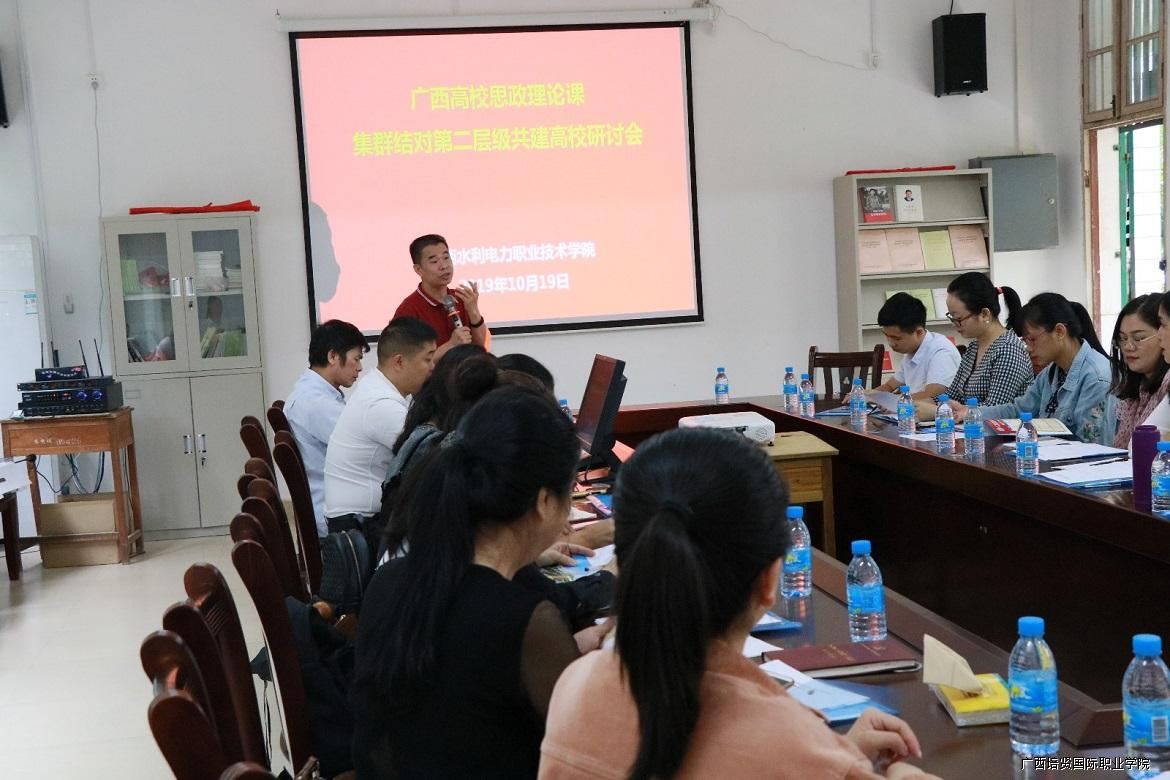 为深入贯彻落实习近平总书记在学校思想政治理论课教师座谈会上的重要讲话精神😲,根据自治区党委教育工委、自治区教育厅研究制定的《广西高校“思想政治理论课多层级集群结对共建大行动”实施方案》及广西水利电力职业技术学院牵头制定的《思想政治理论课集群结对共建方案》。10月19日,广西高校思政理论课集群结对第二层级共建高校研讨会在广西水电职业技术学院召开,我校思政部负责人赵盛裕老师等五位思政课教师参加了此次研讨会🍲。