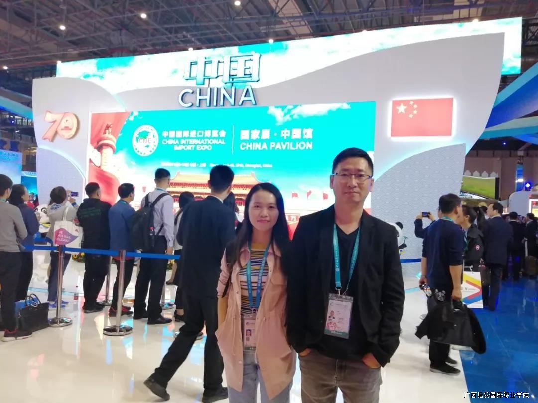 于灏洋副校长和国际学院院长助理李燕华老师在进博会现场合影留念