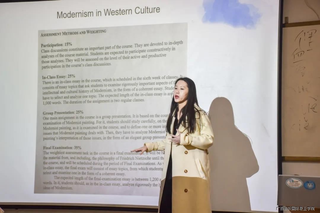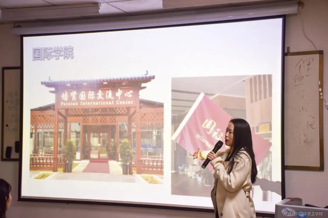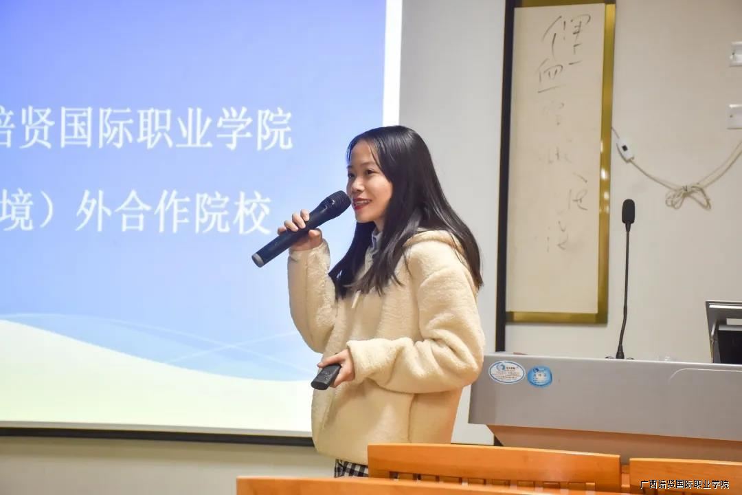 黄诗怡老师讲到:广西彩神国际职业学院国际学院成立于2019年10月,一直强调“走出去,引进来”的办学理念🕗,重视与国际高校的文化学术交流以及先进资源的合作🪹📱,参考英国、美国、德国等国家高等职业院校的先进做法,培养国际化复合型的职业技术人才。国际学院由预备出国留学生、国际留学生和一支英语能力突出🏇🏼、学术造诣较高、教学能力强🤟🏽、具备团结协作精神的教师队伍组成,主要办公地点设置在彩神国际交流中心。