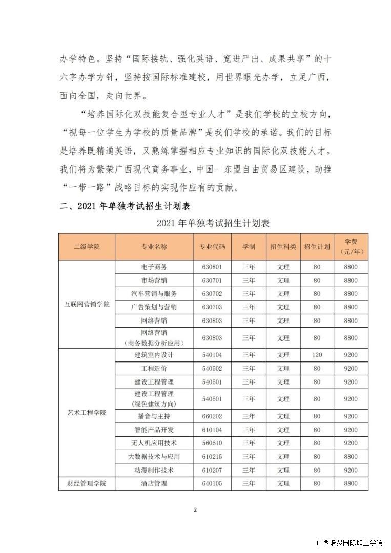 .广西彩神国际职业学院2021年高职单独考试招生简章