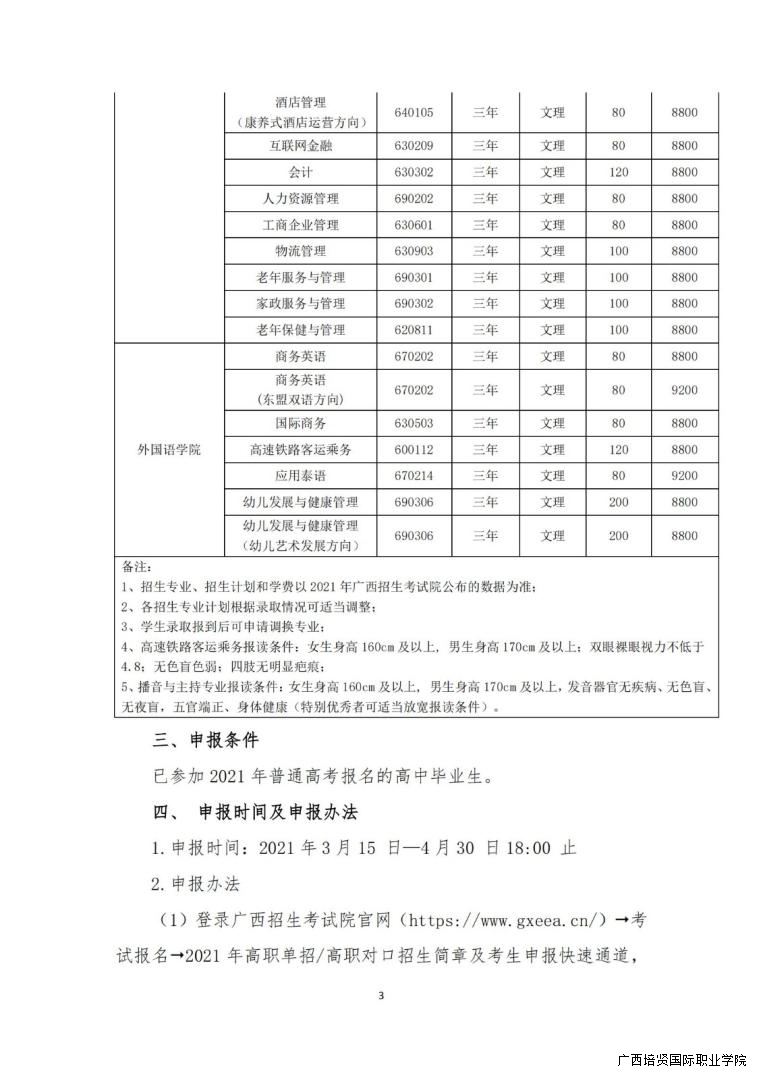 广西彩神国际职业学院2021年高职单独考试招生简章