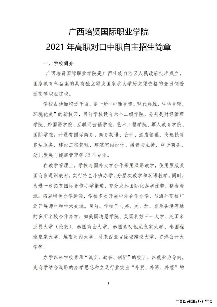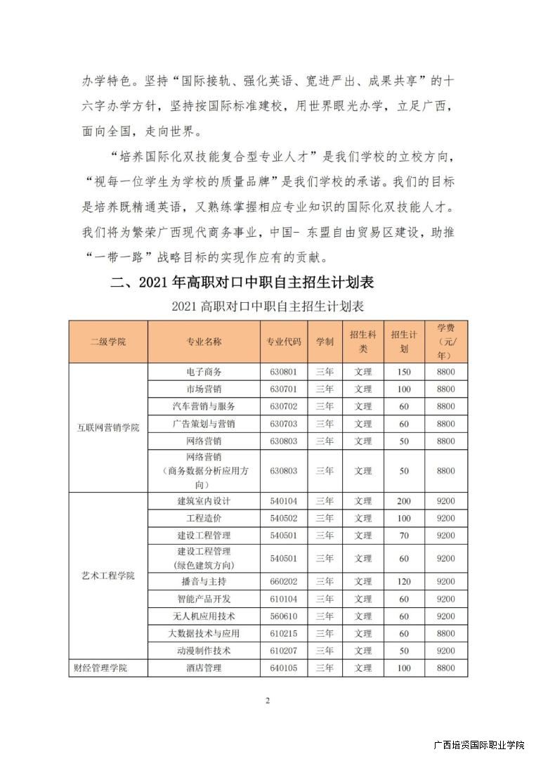 广西彩神国际职业学院 2021年高职对口中职自主招生简章