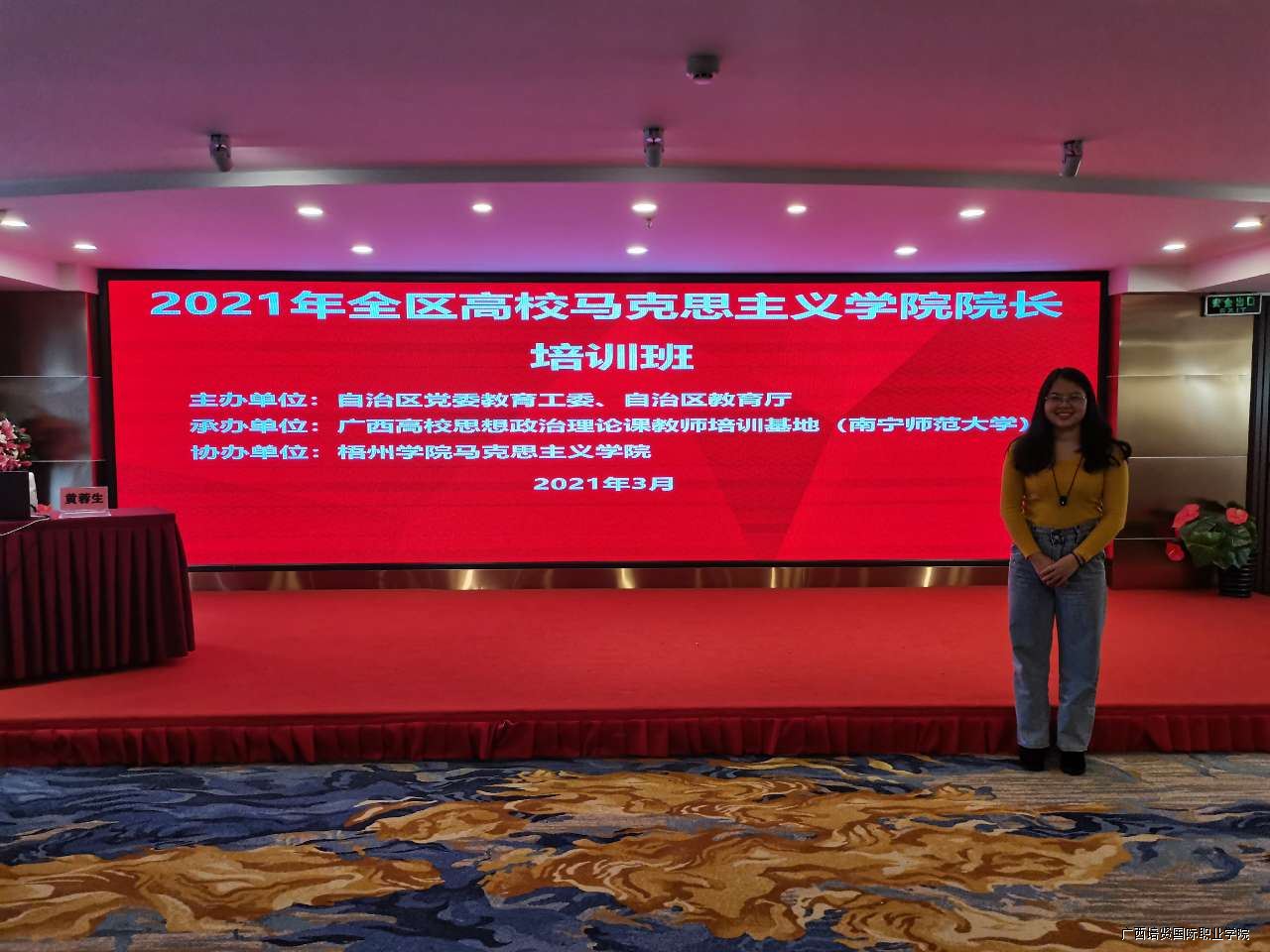 3月26-29日在广西红色革命摇篮的梧州市举办了由自治区党委教育工委👧🏽、自治区教育厅主办,广西高校思想政治理论课教师培训基地(南宁师范大学)承办⛷,梧州学院马克思主义学院、广西教育研究院协办的2021年全区高校马克思主义学院院长培训班。我校委派教师代表罗爱柳老师参加了本次培训👂🏽✏️。