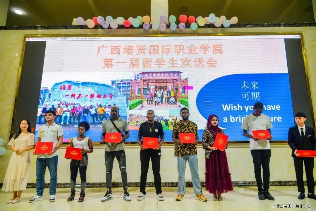 2021年6月1日晚上🦸🏻♂️,国际学院在1号教学楼大厅为第一届留学生举行了隆重的欢送晚会👩🍼,祝贺留学生顺利完成学业。出席本次晚会的领导及嘉宾为国际学院院长助理兼国际交流中心副主任覃严生🕵️🌰、国际学院院长助理李燕华、公共基础部副主任农国显、我校所有外籍教师及留学生任课老师。