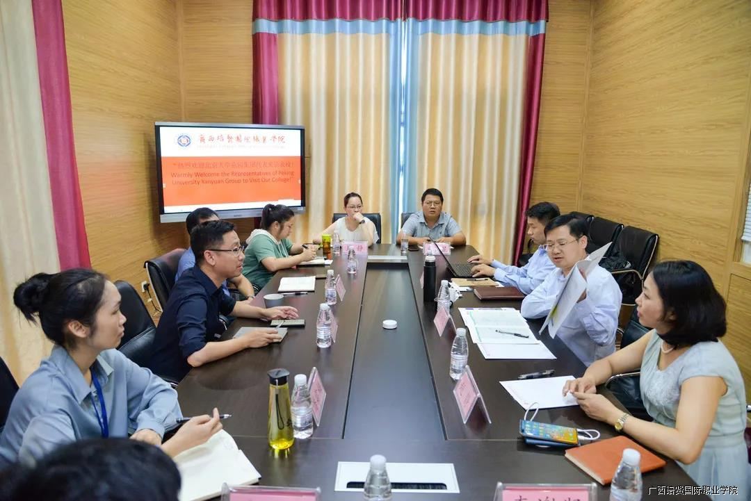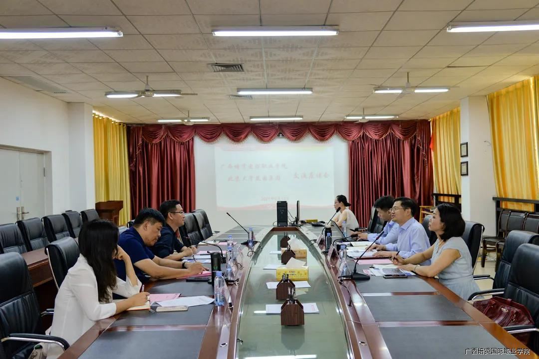 7月13日下午,我校副校长于灏洋🏋️‍♂️、北大燕园集团总裁陈树军、副总裁赵静、总裁助理宗家凯、我校财经管理学院院长黄飞、外国语学院副院长潘霜梅、学院办公室副主任周静、教务处副处长何庆🕋😧、国际交流中心副主任覃严生、公共基础部副主任农国显、军人教育学院学工科科长李谢坚在国际交流中心会议室举行业务合作交流会议。