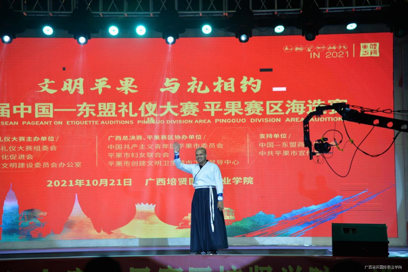 为了引导广大市民提高文明意识、增长礼仪知识、树立文明新风,掀起学礼仪、讲礼仪、用礼仪的热潮,使群众践行文明礼仪的自觉意识不断增强,社会文明程度明显提高,为平果创建文明城市提供强有力的思想保障和人文环境;也为了传播和弘扬传统礼仪文化,营造良好的校园礼仪氛围🔜🙎🏼♂️,10月21日,“文明平果 与礼相约”第17届中国—东盟礼仪大赛平果赛区海选赛在我校隆重举行。以下是我校国际学生参赛照片:
