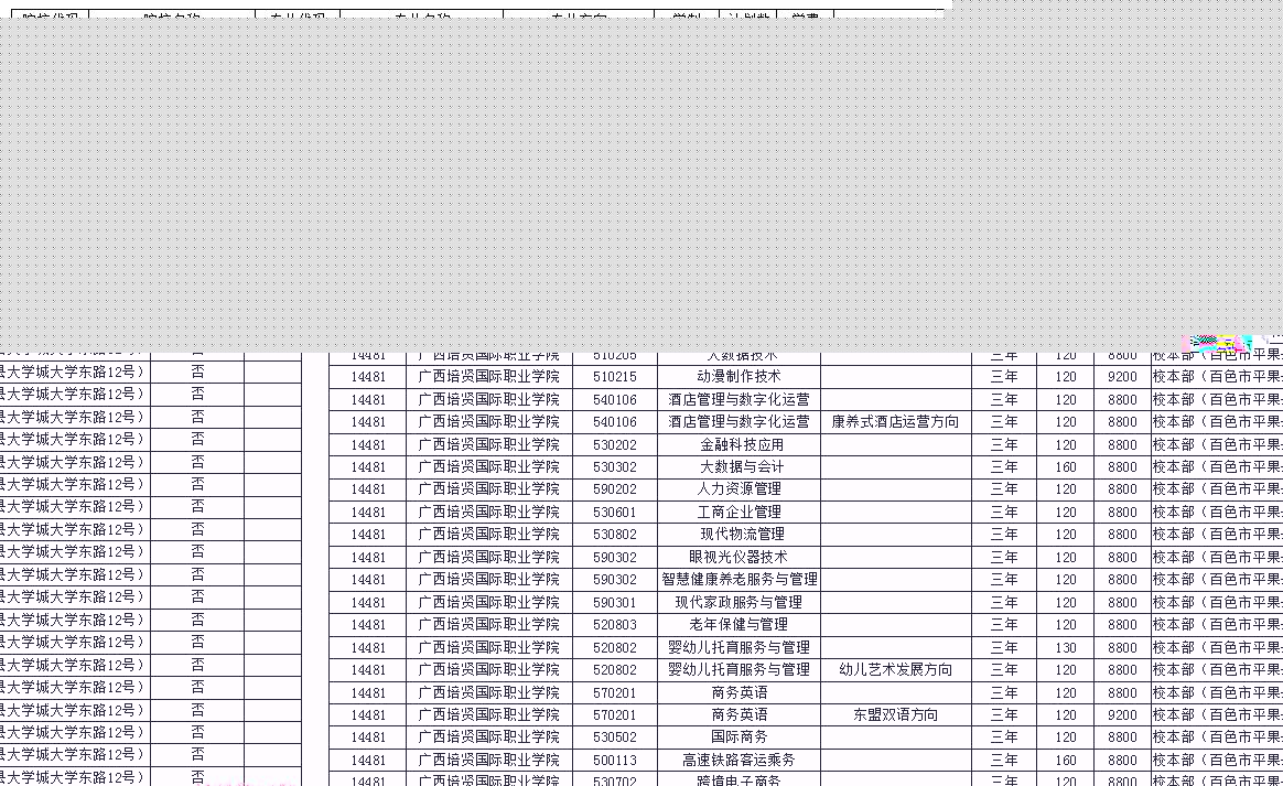 广西彩神国际职业学院2024年高职对口中职招生计划编报表